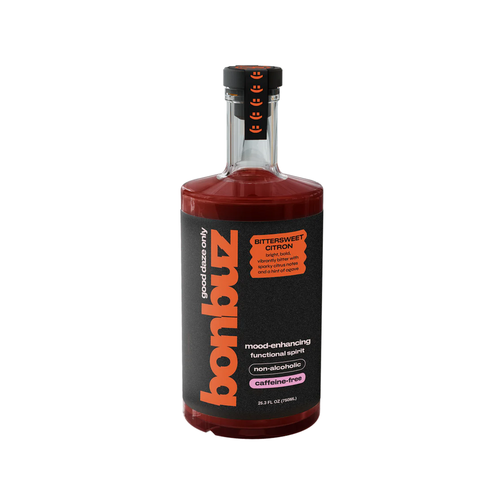 bonbuz is the first functional alcohol-free social spirit that's full of high vibes and free of alcohol. designed to stimulate the mind, shift your mood and connect more deeply, we pack a vibrantly bitter punch, with a nostalgic cola nose, and a careful combination of tart citrus, and earthiness.