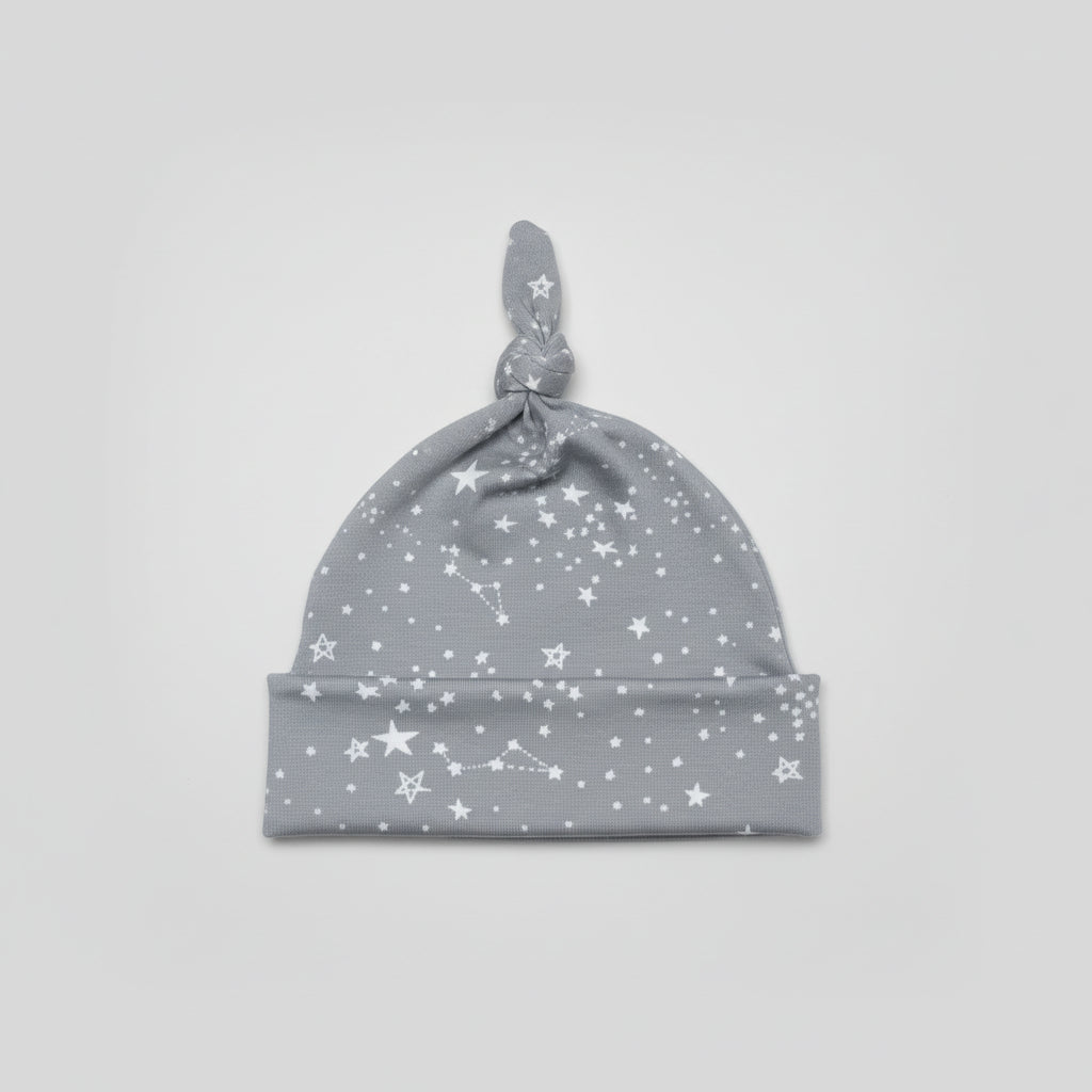 Cherish Design - Newborn Baby Hat - Grey w/ Stars / w/ Knot is backordered and will ship as soon as it is back in stock.