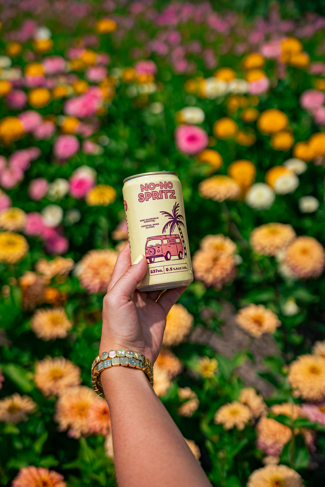 The No-No Spritz, your go-to non-alcoholic cocktail for any occasion.  Whether you’re watching the sunset or enjoying a midday break, it’s always spritz-o’clock.