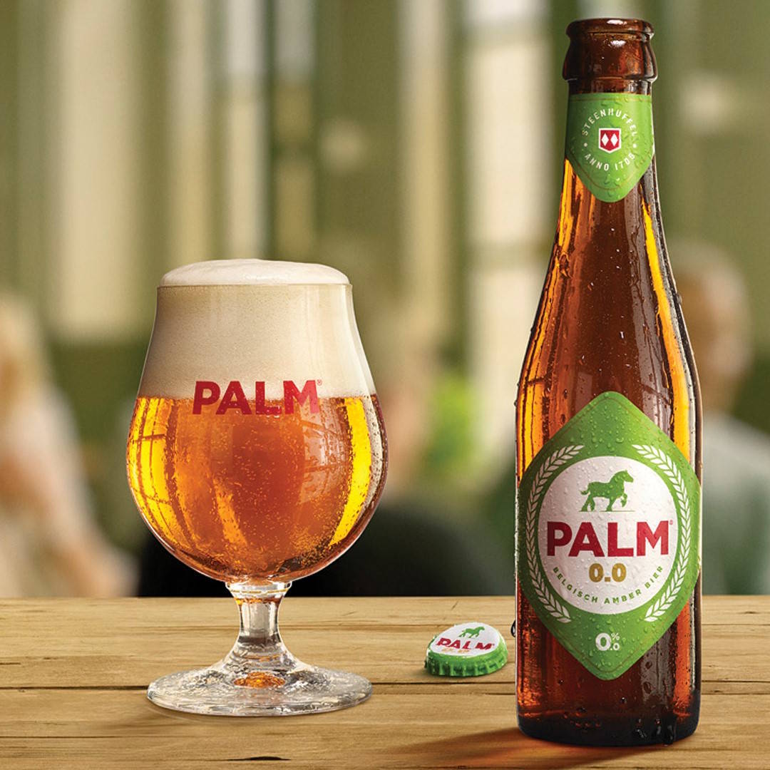 Palm 0.0% is a refreshing, alcohol-free beer with a distinct amber color and a taste profile influenced by hops grown on the brewery's own fields and selected malts.