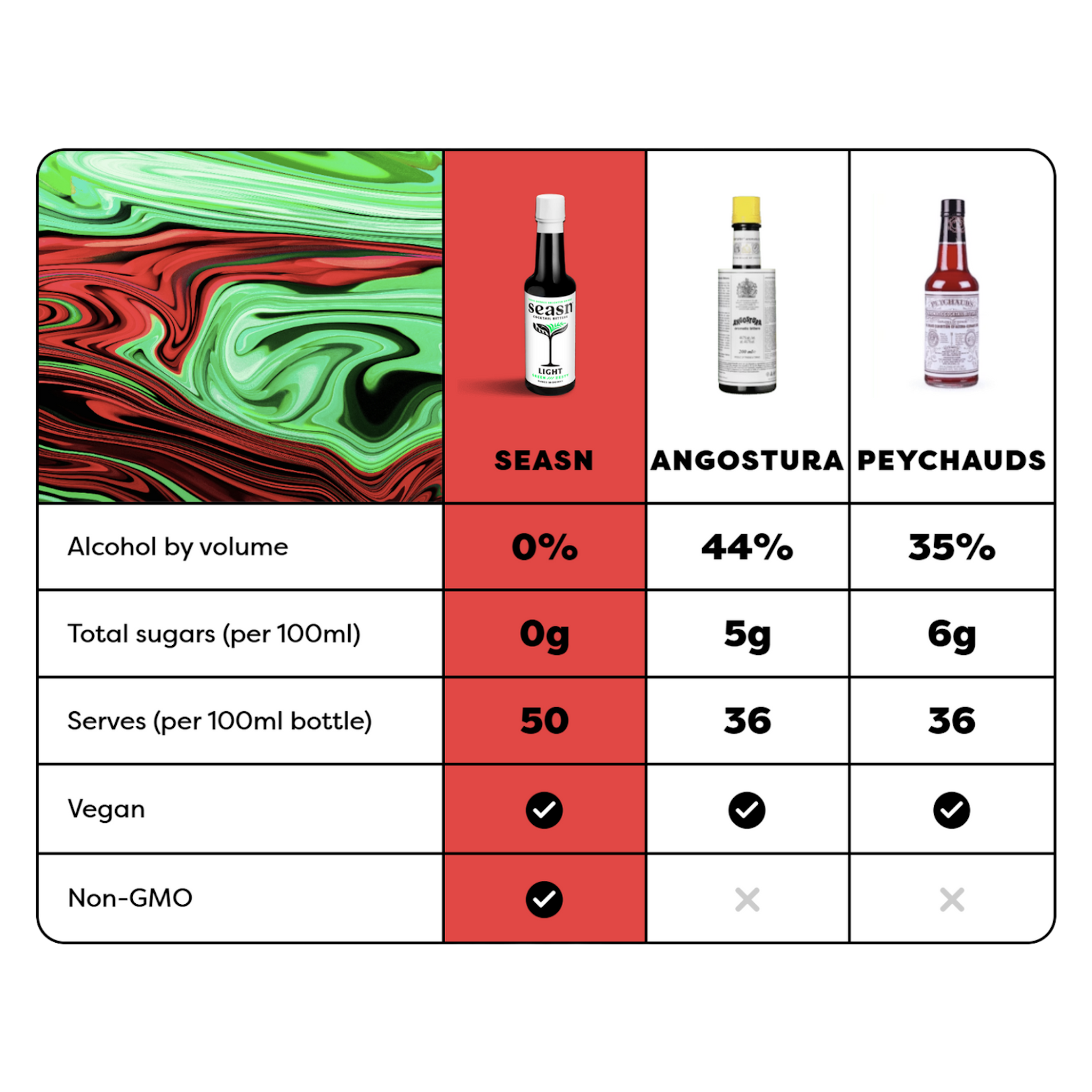 50x serves | vegan | non-gmo | sugar-free | 0.0% ABV
