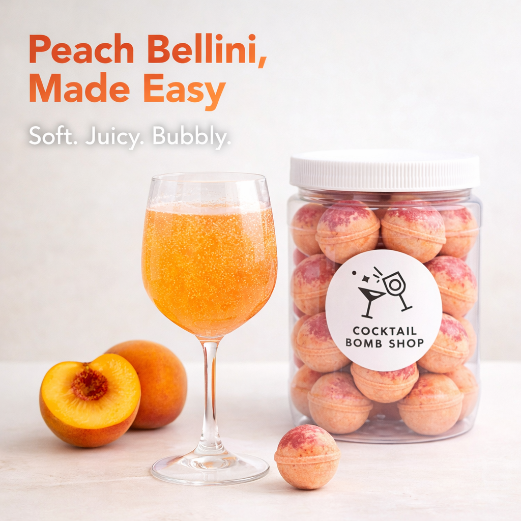 Ready to sip a little Italian sunshine? Meet the Peach Bellini Glimmer Bomb™, a sparkling cocktail bomb inspired by Italy’s iconic brunch classic, featuring juicy peach notes and elegant prosecco-style flavour designed to feel light, refined, and celebratory.