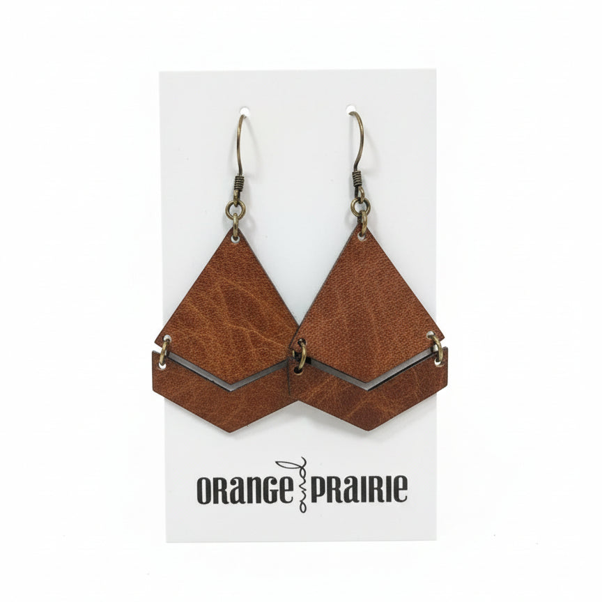 Elevate your everyday style with the effortless elegance of Orange and Prairie. Handcrafted with supple genuine leather and refined gold detailing, these earrings blend modern minimalism with a warm, prairie-inspired charm.